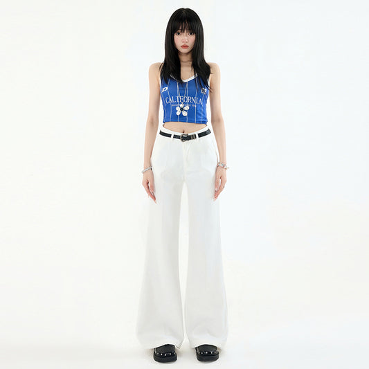 Women's Mid-Waist Flared Suit Pants with Slimming Design Casual Trousers