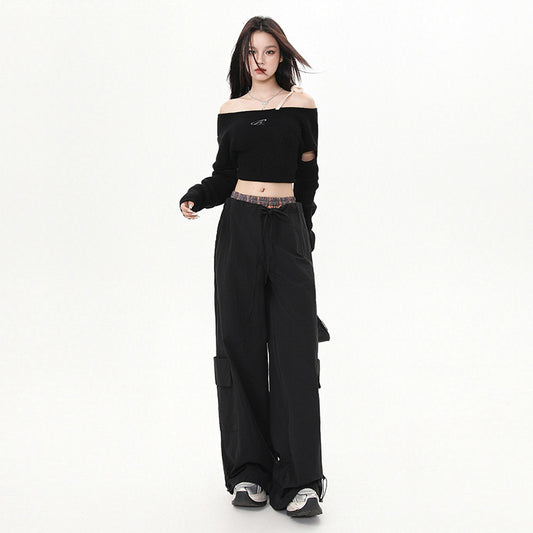 Women's Pants Plaid Splicing Trousers High Street Loose Wide-Leg Work Pants